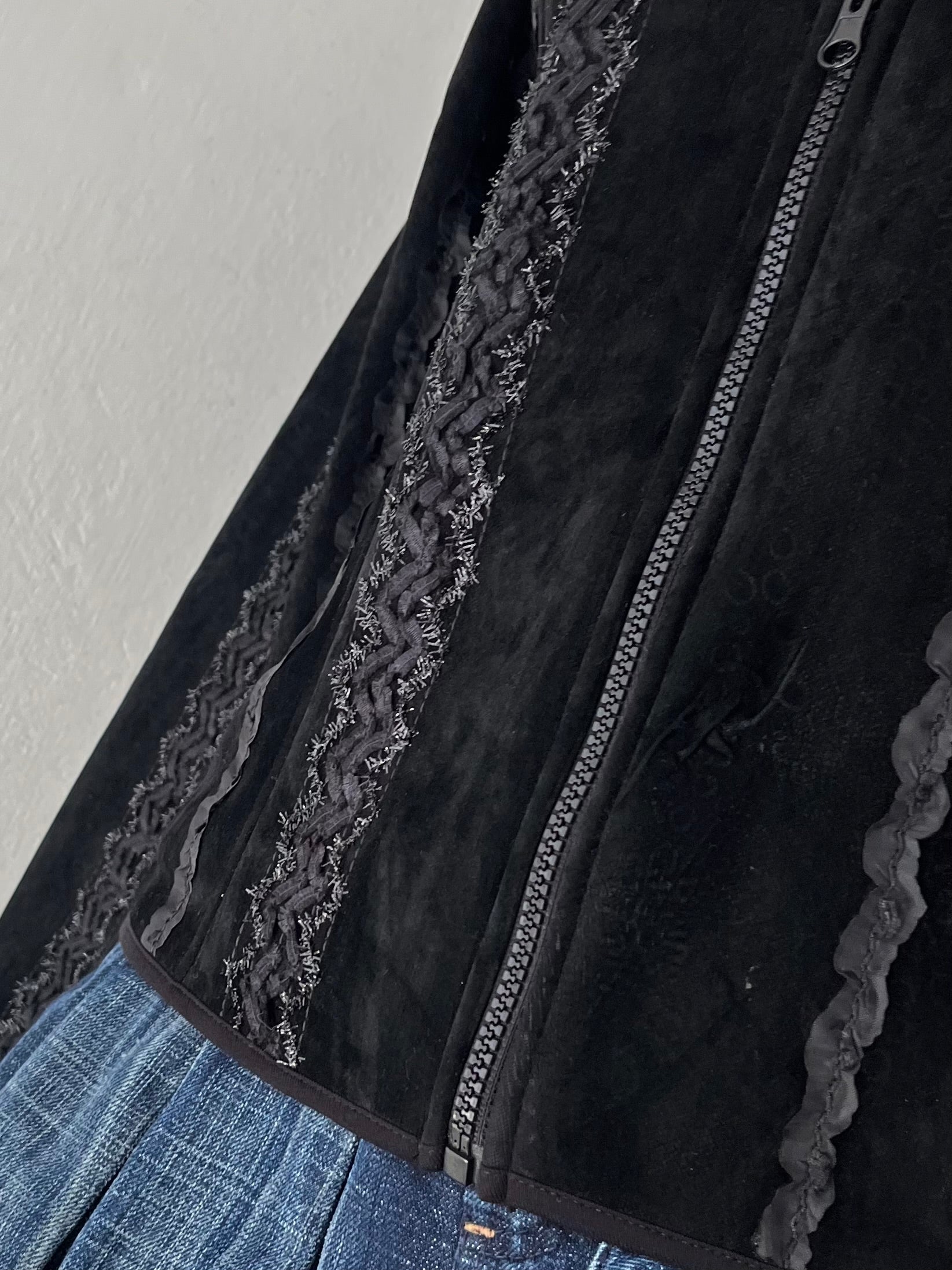 Black jacket with embroidered designs