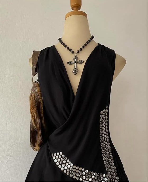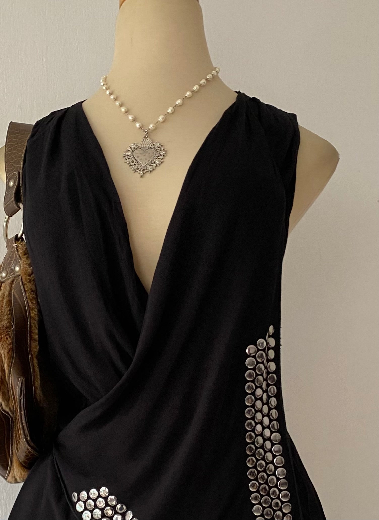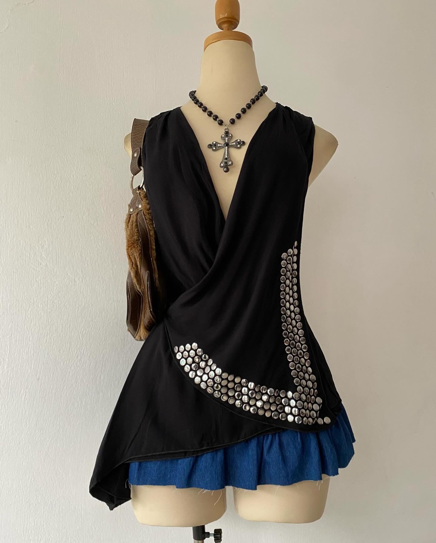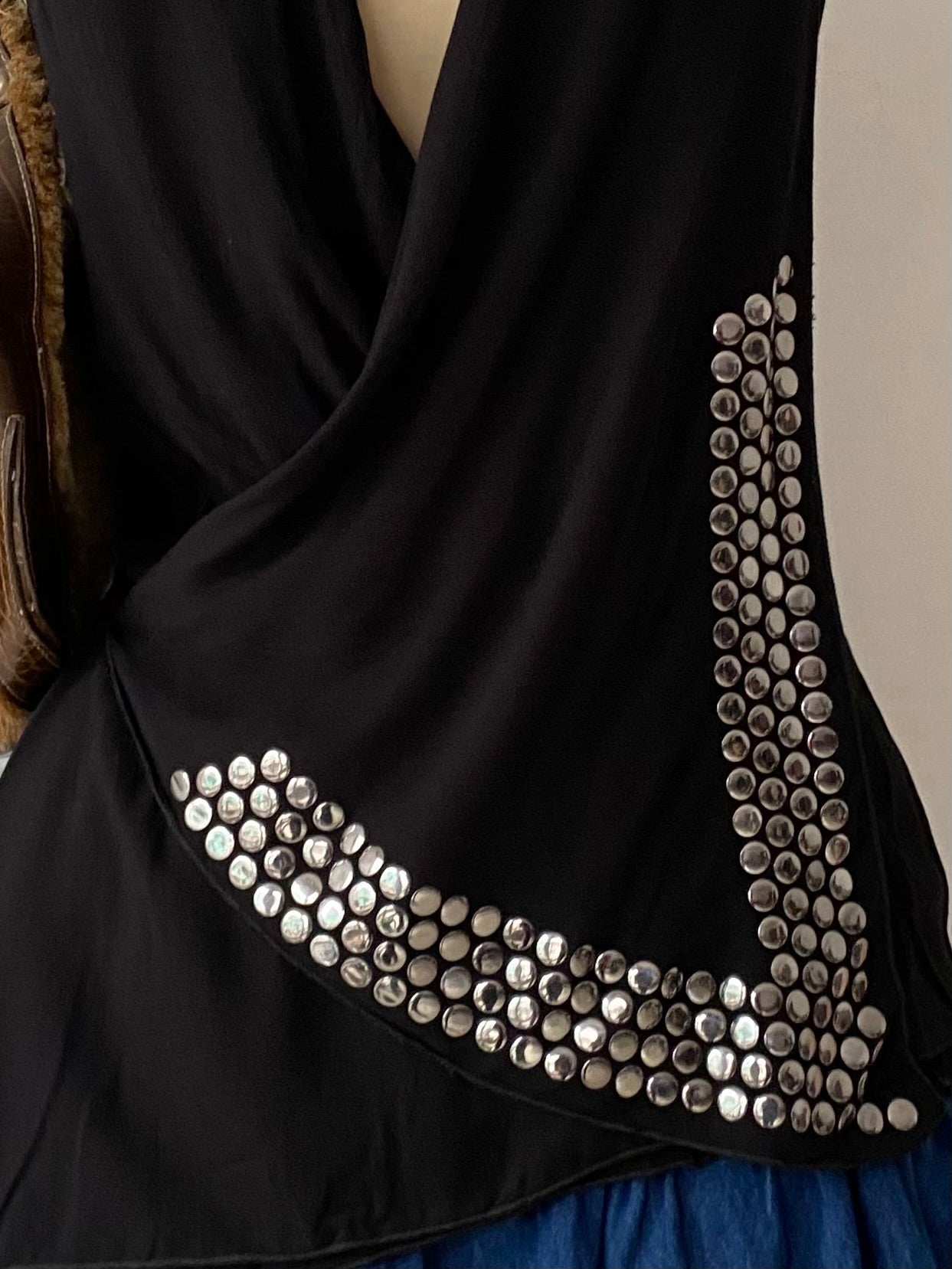 Black top with silver appliqués