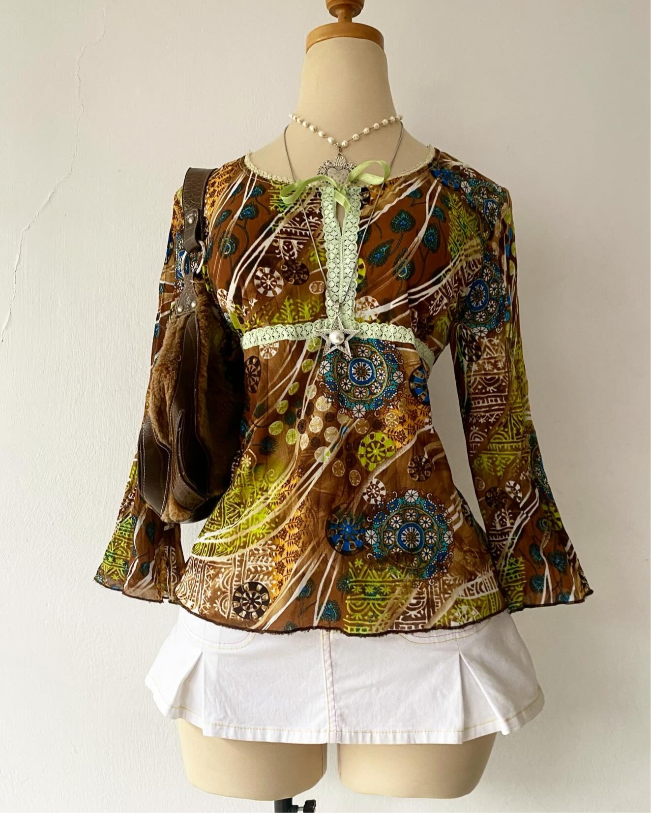 Bohemian top with bow~ Size M