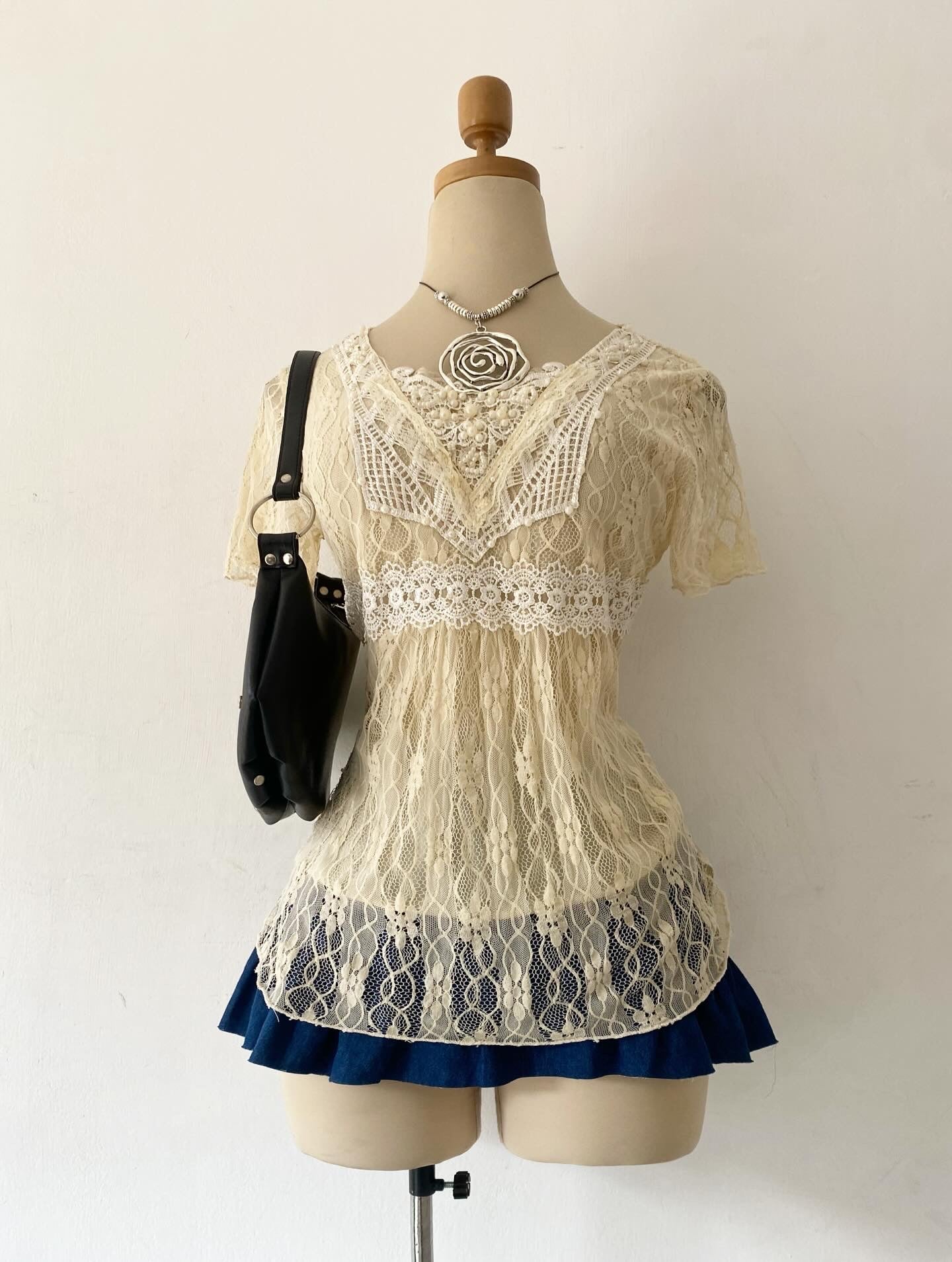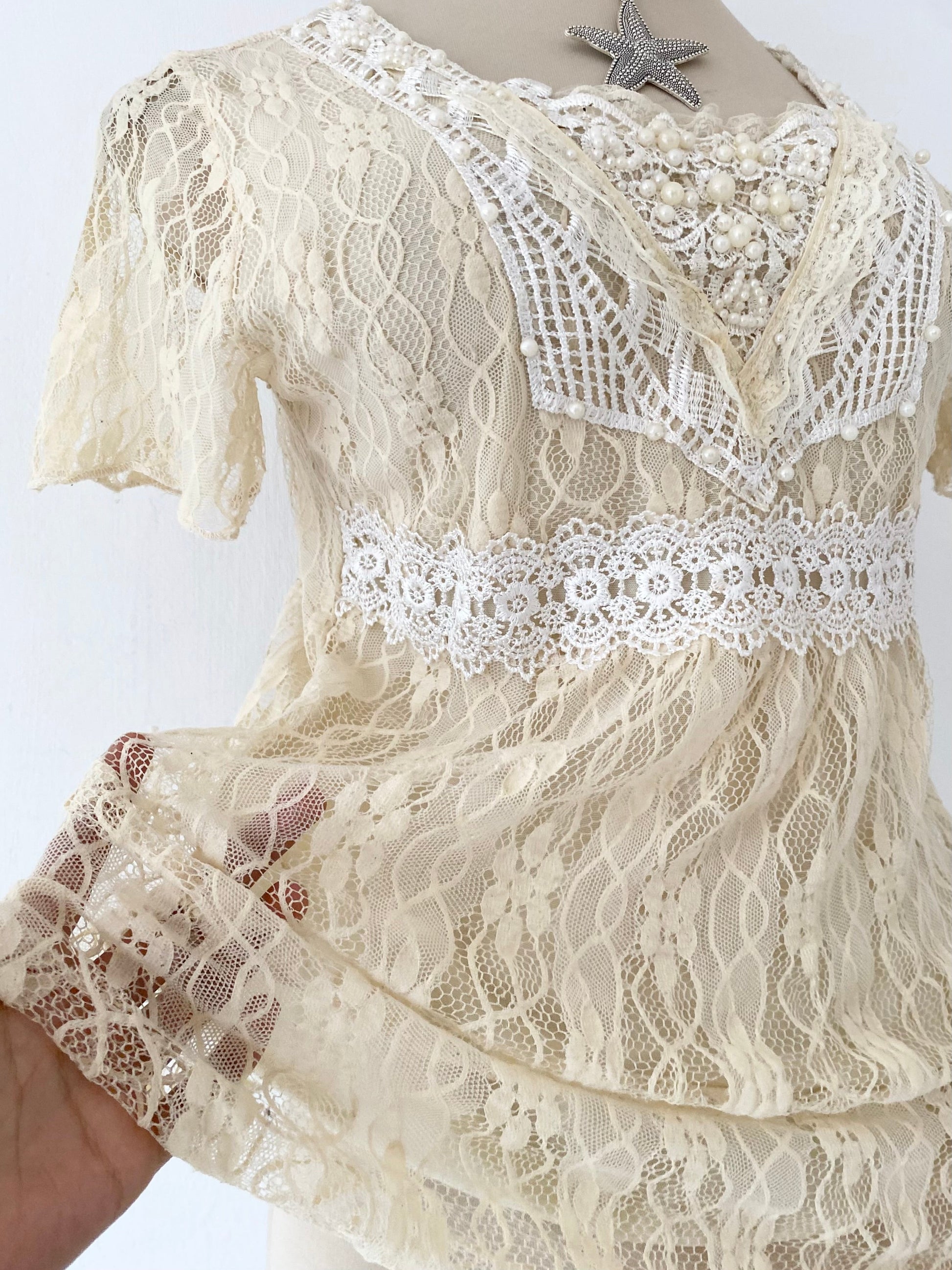 Coquette lace top with pearls