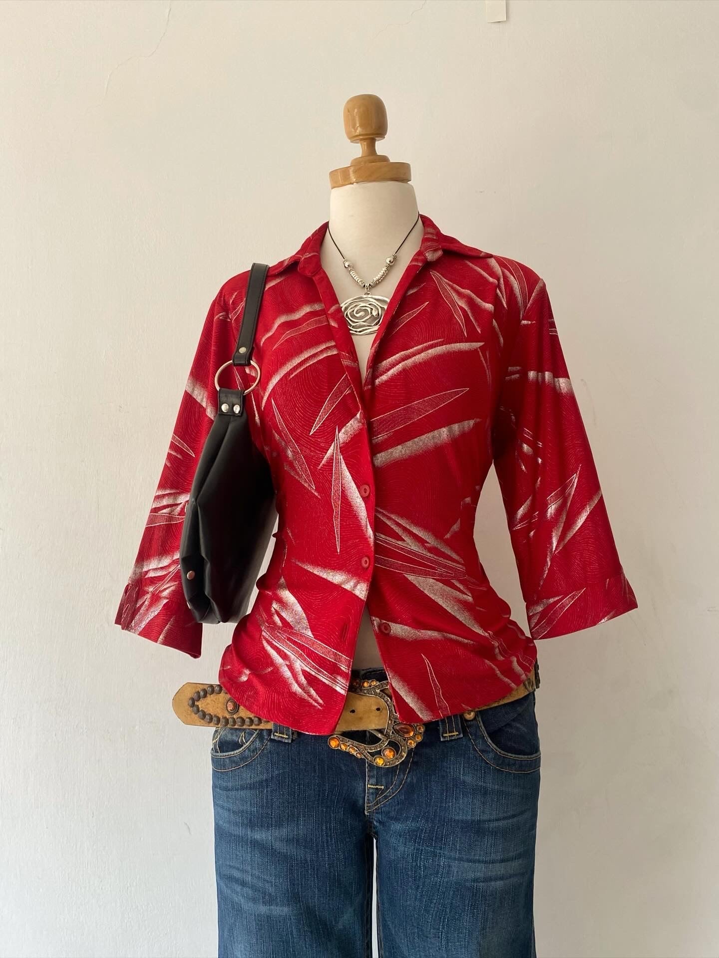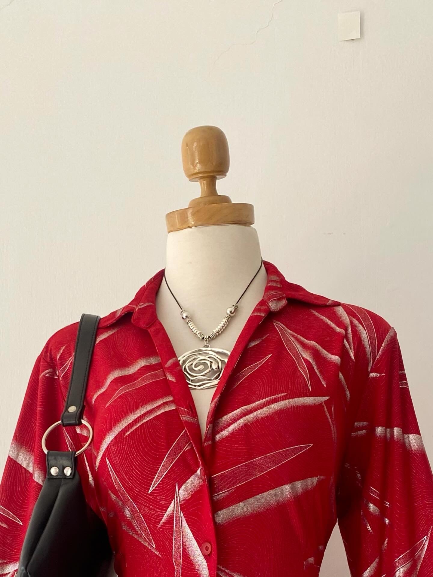 Red blouse with silver sparkles